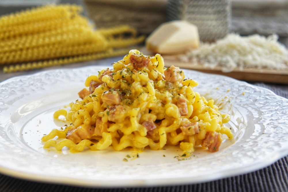 Hoy tenía en casa unos huevos camperos de los de verdad, de esos que ponen gallinas que comen gusanitos por el campo y pasean con sus pollitos en total libertad sin preocuparse de nada. En sí, huevos de gallinas felices, con un lindo color amarillo. Y si a esto lo sumamos unos fusillis artesanos que tenía por casa, nos sale pasta a la carbonara.