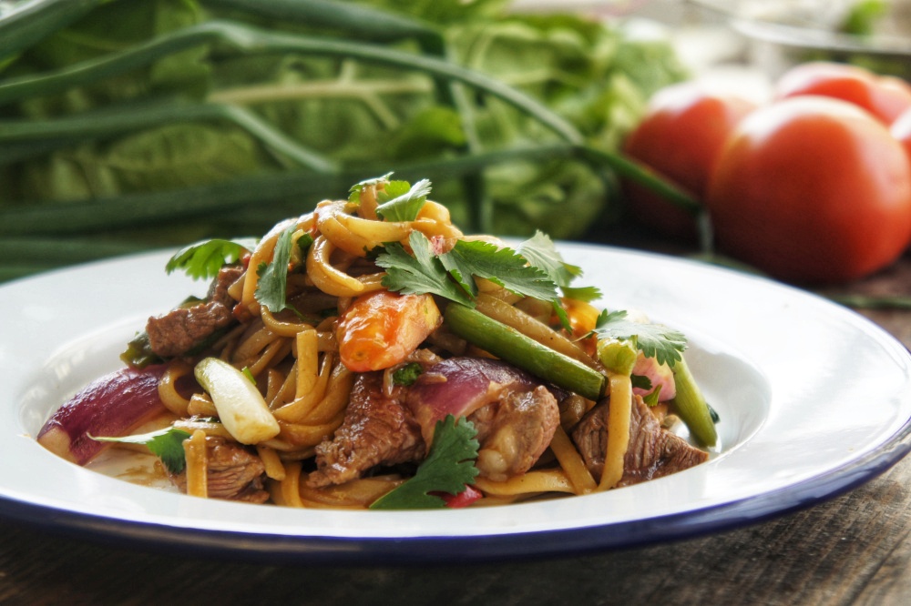En mi querido Perú, la técnica del «saltado» es bastante popular. Claro, este saltado peruano es en realidad el salteado que todos conocemos, pero así somos. Somos esos que toman los famosos espaguetis al pesto y te ponen en la mesa unos tallarines verdes, que se parecen pero no son. Los que toman el super internacional arroz con leche y te salen con un arroz zambito con su mazamorrita y su chichita con yapa pe casera. Somos los que ven el sautée francés y la técnica del wok tan propia de la cocina oriental, y luego empiezan a saltar las cosas bien a su manera. ¿Y qué nos gusta saltar? Pues, un montón de cosas, pero en especial lomo, y por supuestísimo, tallarines.