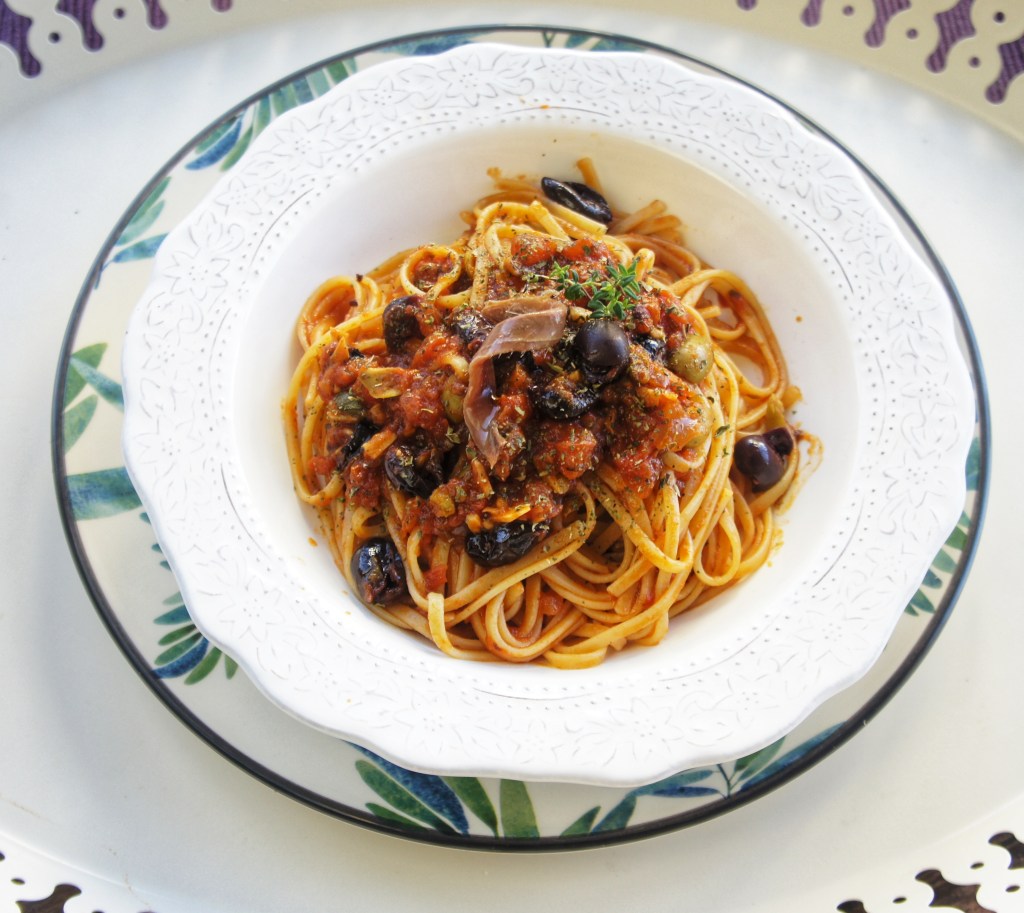 Como se imaginarán no esperaba demasiado de unos sencillos espaguetis a la puttanesca sin embargo, tengo que decir que estaban buenísimos y los disfrute como una niña pequeña… uno de esos momentos en los que todo es sencillamente perfecto. Buena compañía, una copa de vino y un delicioso plato de espaguetis.