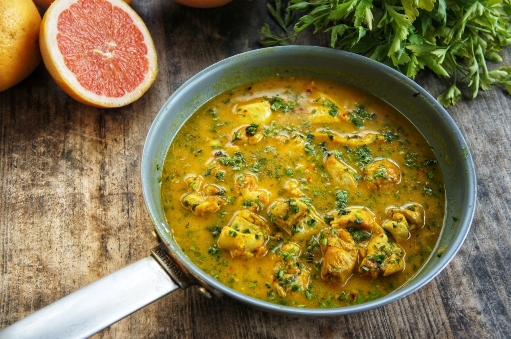 El pomelo siempre me pareció una fruta amarga, por lo que ha sido poco o nada utilizado en mi cocina. Sin embargo, este mes he preparando diferentes recetas con pomelo y he llegado a la conclusión de que es una fruta con personalidad y que puede llegar a sorprendernos. Por lo que al ver este plato me anime a prepararlo y así ver que tal quedaba el pomelo en un guiso de pollo.
