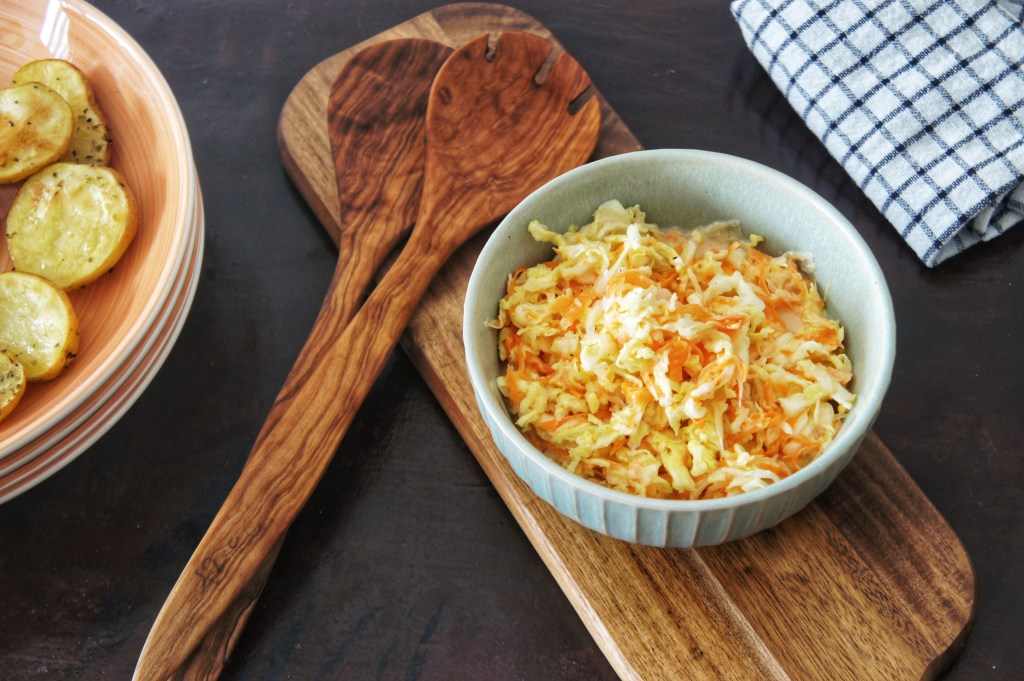 Si hay una ensalada que va de maravilla en una parrillada o acompañando un asado, es una buena coleslaw. Aunque hay muchas variaciones de esta receta, todas se caracterizan, como bien dice su nombre, por tener una base de col que le aporta ese punto crujiente que dura durante días y por ese toque dulce que la hace perfecta para acompañar nuestras carnes. Y aunque no sé cómo ni cuándo aprendí esta receta en particular, sé que me gusta mucho.